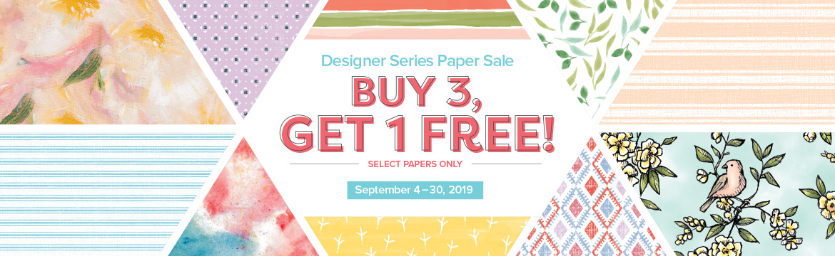 By popular demand, Stampin’ Up! is bringing back the Designer Series Paper Sale! During September 4–30, you can buy three packages of select Designer Series Paper and get one FREE! Below is the flyer with the designer series papers and details listed: